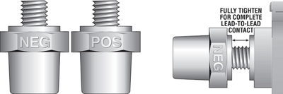 Side Terminal Charging Posts should be used to ensure the best testing and charging results for side terminal batteries. The charging posts will provide a flush lead-to-lead contact. Be sure to tighten the charging post until it is snug and secure. This will allow a strong current to pass from the charging post to the battery terminal.